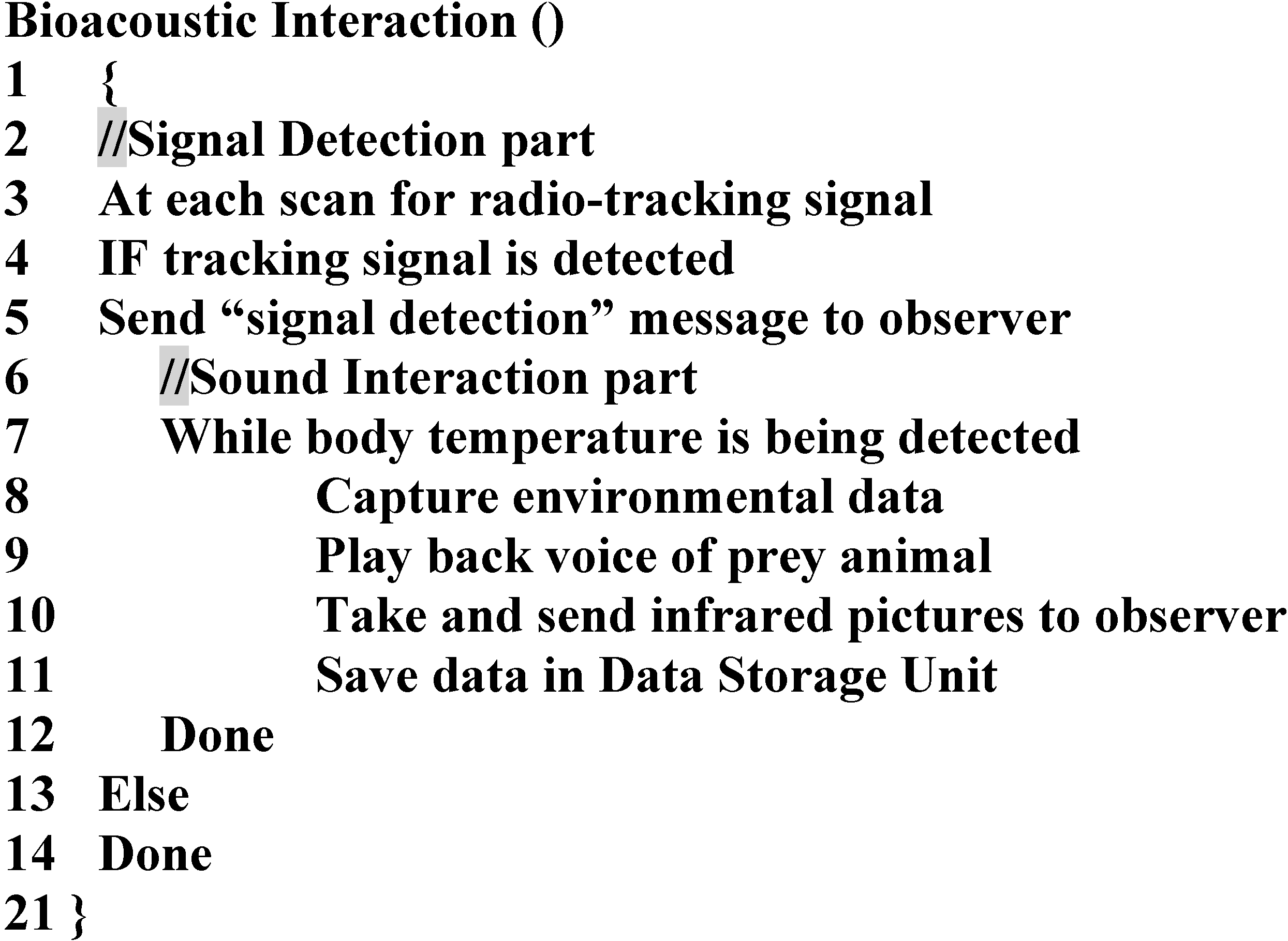 In this study, we present a vision of how a human–computer–biosphere interaction (HCBI) can facilitate a sustainable society. HCBI extends and transforms the subject of human–computer interaction from countable people, objects, pets, and plants into an auditory biosphere that is an uncountable, a complex, and a non-linguistic soundscape. As an example, utilizing HCBI to experience forest soundscapes can help us feel one with nature, without physically being present in nature. The goal of HCBI is to achieve ecological interactions between humans and nature through computer systems without causing environmental destruction. To accomplish this, information connectivity must be created despite the physical separation between humans and the environment. This combination should also ensure ecological neutrality. In this paper, we present an overview of an HCBI concept, related work, methodologies, and developed interfaces. We used pre-recorded animal calls to enable a bio-acoustical feedback from the target wildlife. In this study, we primarily focus on the design and evaluation of a bio-acoustic interaction system utilizing tracking collars, microphones, speakers, infrared cameras, infrared heat sensors, micro-climate sensors, radio-tracking devices, GPS devices, radio clocks, embedded Linux boards, high-capacity batteries, and high-speed wireless communication devices. Our experiments successfully demonstrated bio-acoustic interactions between wildlife—more specifically, an endangered species of a wild cat—and human beings via a computer system, thus validating the HCBI concept.View Full-Text
