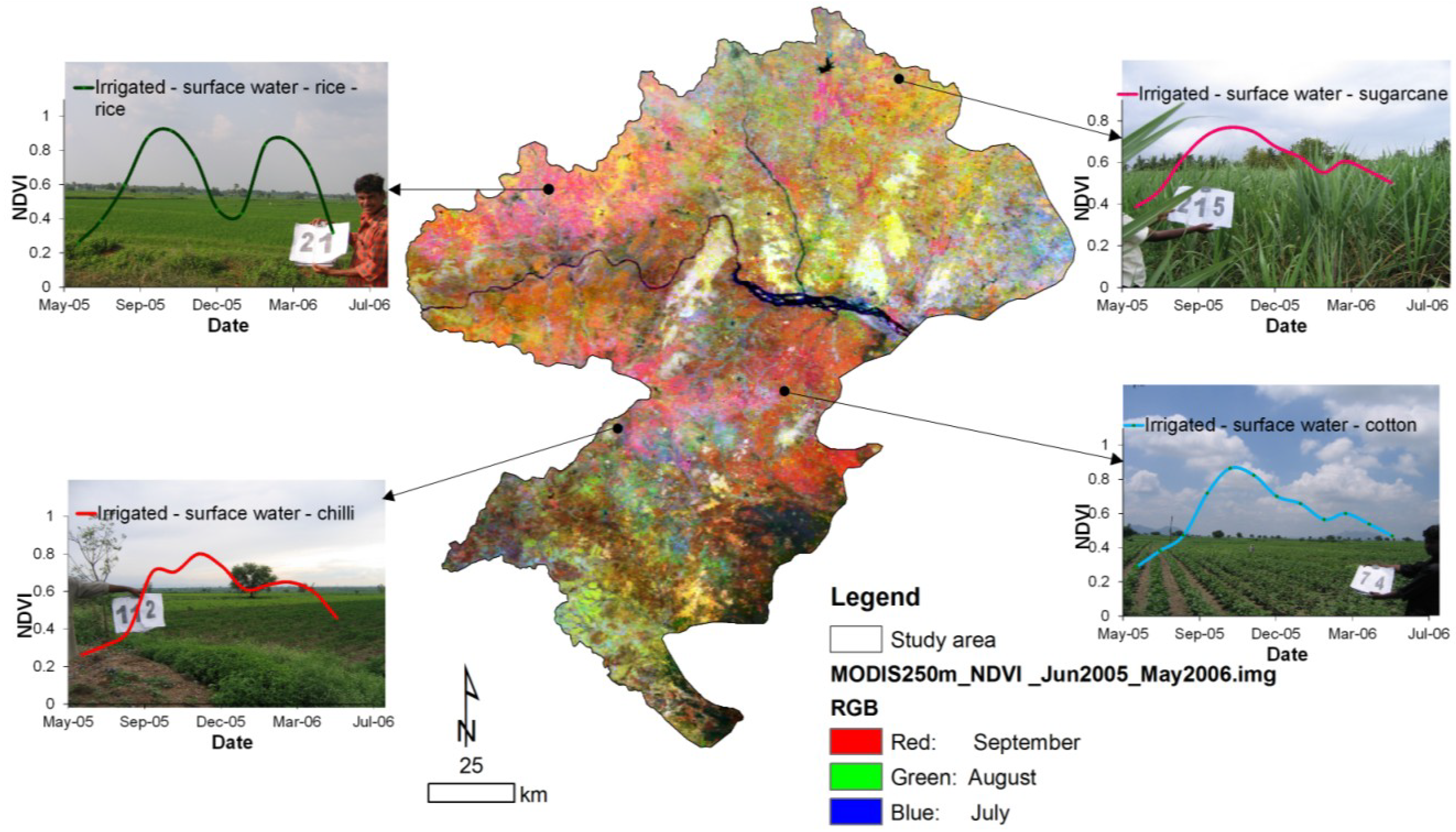 Keywords: irrigated area mapping; crop dominance; Krishna Basin; remote sensing; Nagarjuna Sagar; command area; NDVI and MODIS 250 m