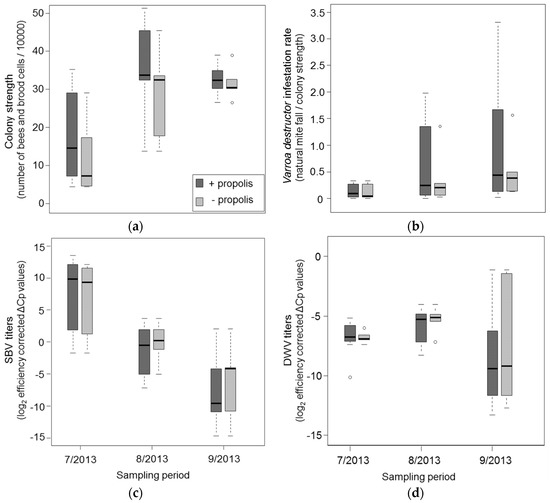 Social immunity is a key factor for honeybee health, including behavioral defense strategies such as the collective use of antimicrobial plant resins (propolis). While laboratory data repeatedly show significant propolis effects, field data are scarce, especially at the colony level. Here, we investigated whether propolis, as naturally deposited in the nests, can protect honeybees against ectoparasitic mites Varroa destructor and associated viruses, which are currently considered the most serious biological threat to European honeybee subspecies, Apis mellifera, globally. Propolis intake of 10 field colonies was manipulated by either reducing or adding freshly collected propolis. Mite infestations, titers of deformed wing virus (DWV) and sacbrood virus (SBV), resin intake, as well as colony strength were recorded monthly from July to September 2013. We additionally examined the effect of raw propolis volatiles on mite survival in laboratory assays. Our results showed no significant effects of adding or removing propolis on mite survival and infestation levels. However, in relation to V. destructor, DWV titers increased significantly less in colonies with added propolis than in propolis-removed colonies, whereas SBV titers were similar. Colonies with added propolis were also significantly stronger than propolis-removed colonies. These findings indicate that propolis may interfere with the dynamics of V. destructor-transmitted viruses, thereby further emphasizing the importance of propolis for honeybee health. View Full-Text