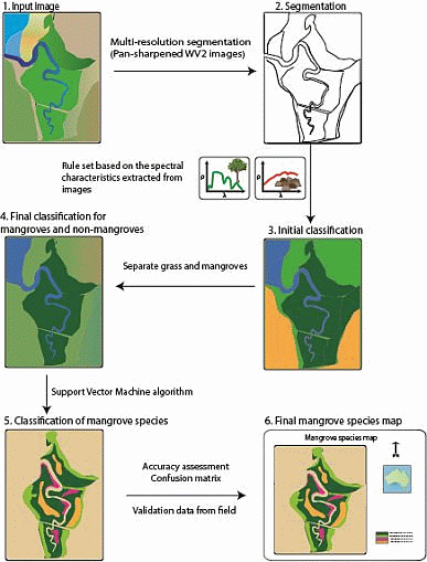 Keywords: mangrove species mapping; object-based image analysis; support vector machine; WorldView-2; aerial photographs