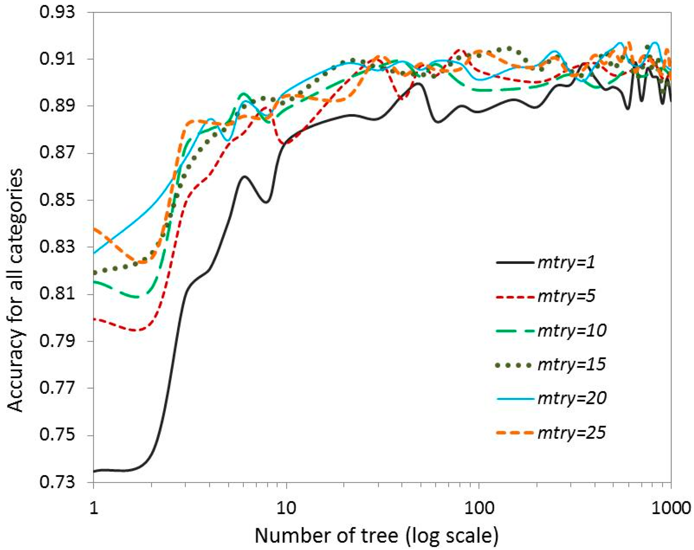 Keywords: larch plantations; forest type classification; multi-seasonal imageries; texture; random forests; variable assessment